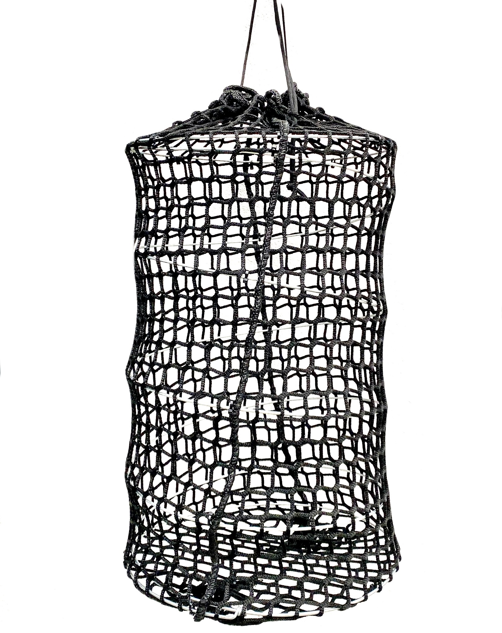 Der Heukorb "Pegasus" hat eine Maschenweite von 4,5 cm (Maschenstärke 4 mm, also lichte Weite 4,1 cm).